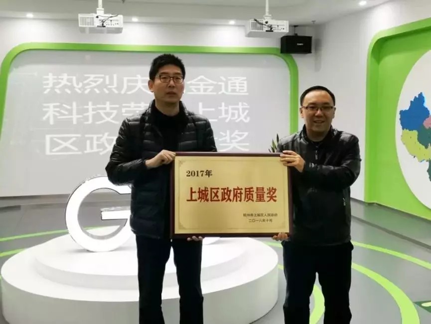 2018年12月13日上午,杭州市上城區(qū)副區(qū)長薛鴻翔一行蒞臨金通科技總部舉行了“上城區(qū)政府質量獎”授牌儀式,杭州公交集團黨委副書記、副總經理、金通科技董事長章賢春接受了獎牌。